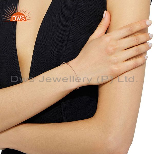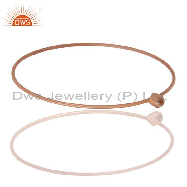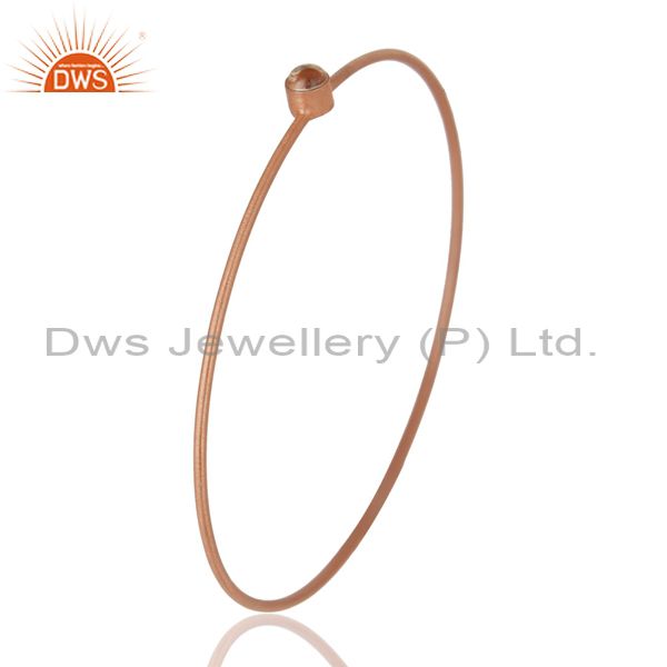 14K Rose Gold Plated 925 Sterling Silver Crystal Quartz Gemstone Sleek Bangle