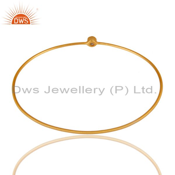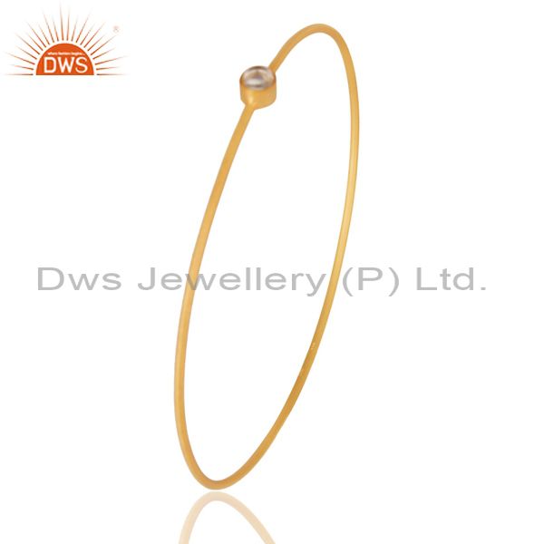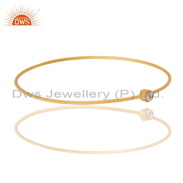 14K Yellow Gold Plated 925 Sterling Silver Crystal Quartz Gemstone Sleek Bangle