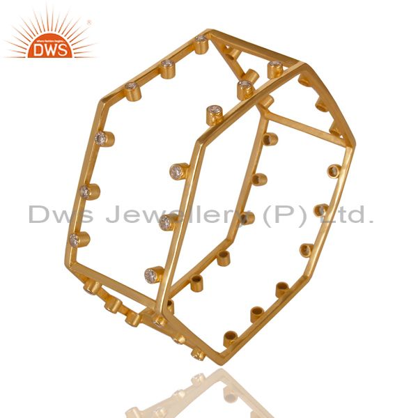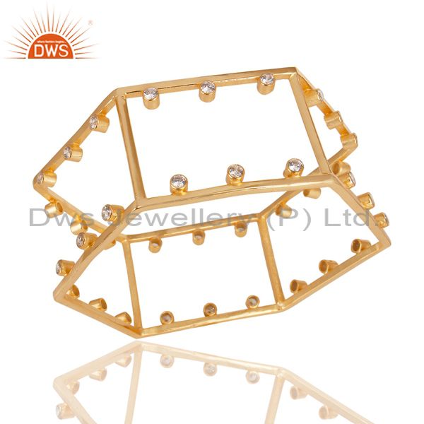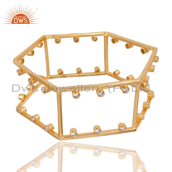 14K Yellow Gold Plated Handmade White Zirconia Fashion Style Brass Cuff Bangle