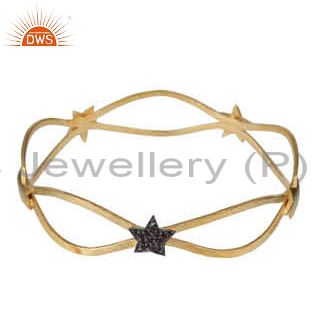 14K Yellow Gold Plated Sterling Silver Smoky Quartz Designer Bangle Bracelet