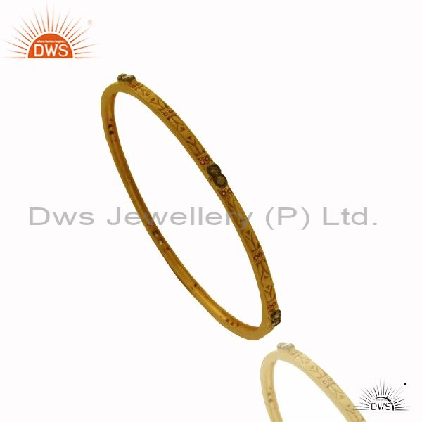 18K Gold Over Sterling Silver Blue Sapphire And Pave Diamond Bangle Bracelet