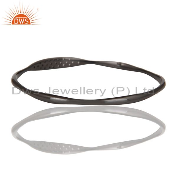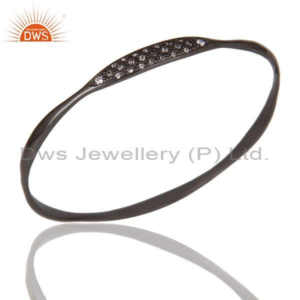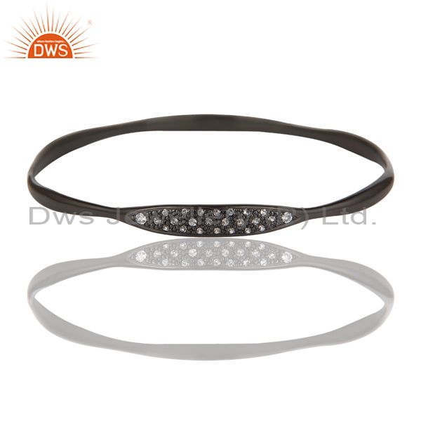 18K Gold Plated & Black Oxidized 925 Silver White Topaz Bangle Bracelet Jewelry