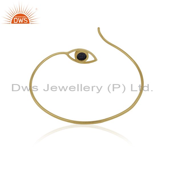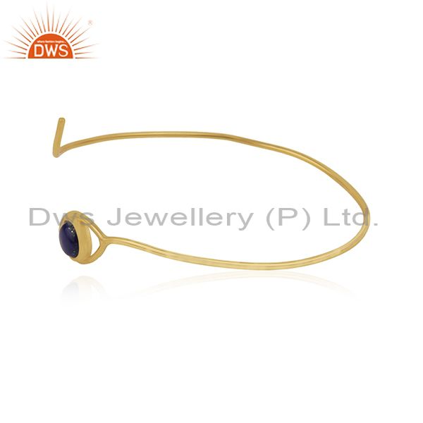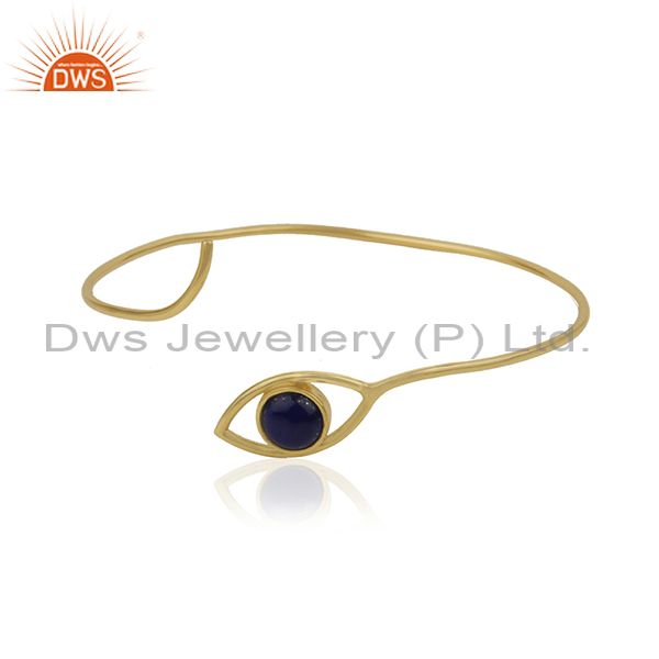 18K Gold Plated 925 Silver Lapis Gemstone Evil Eye Cuff Bracelet Wholesale