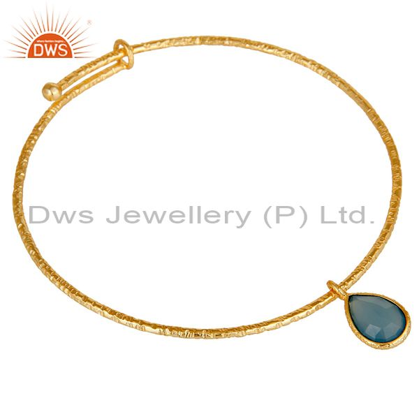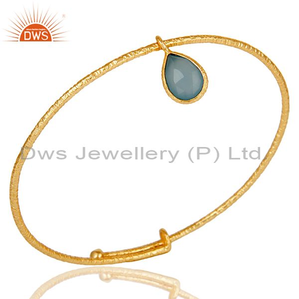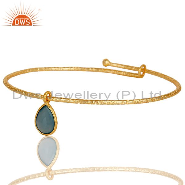 18K Gold Plated 925 Sterling Silver Handmade Charm Bangle With Chalcedony
