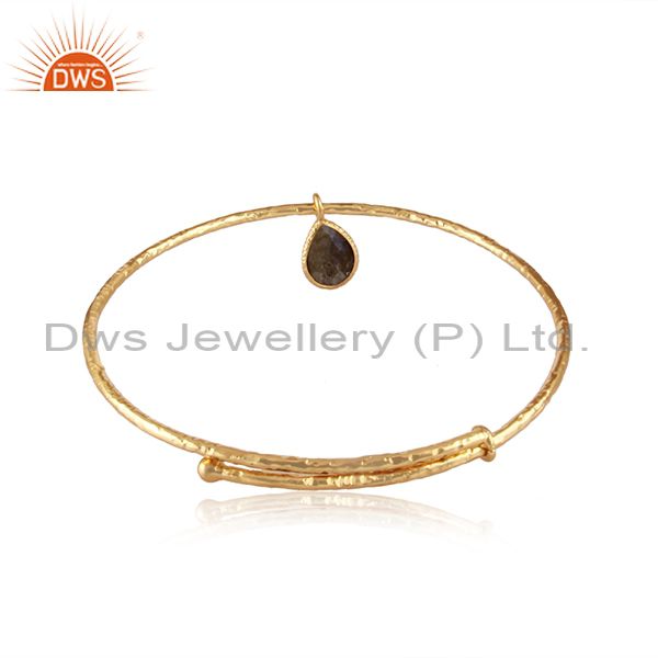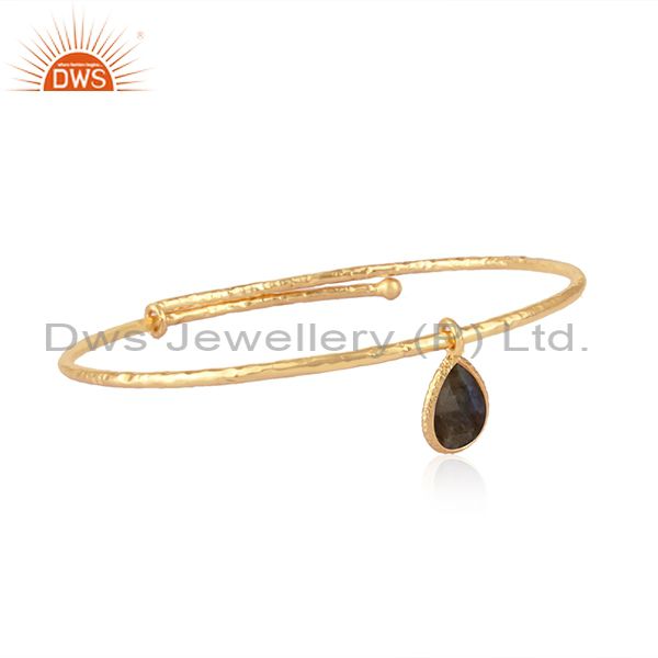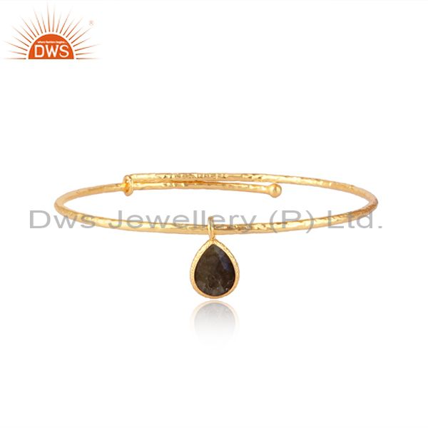 18K Gold Plated 925 Sterling Silver Handmade Charm Bangle With Labradorite
