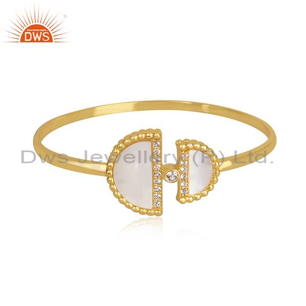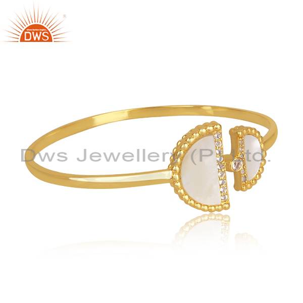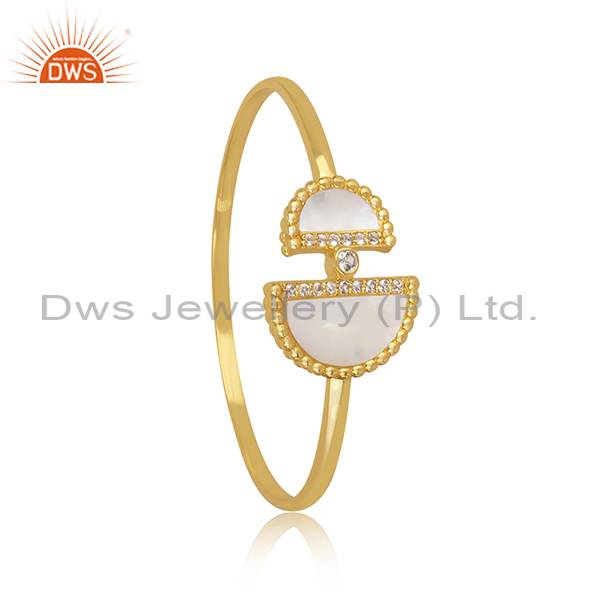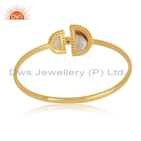 18K Gold Plated Silver Bangle With D Shape Mother Of Pearl