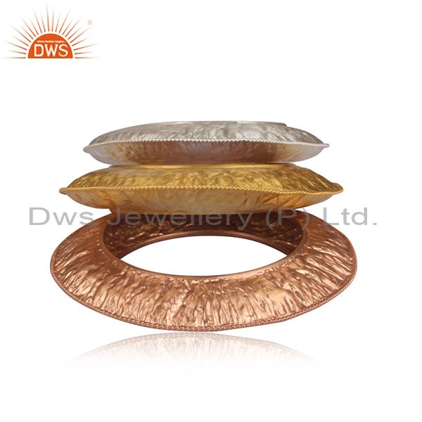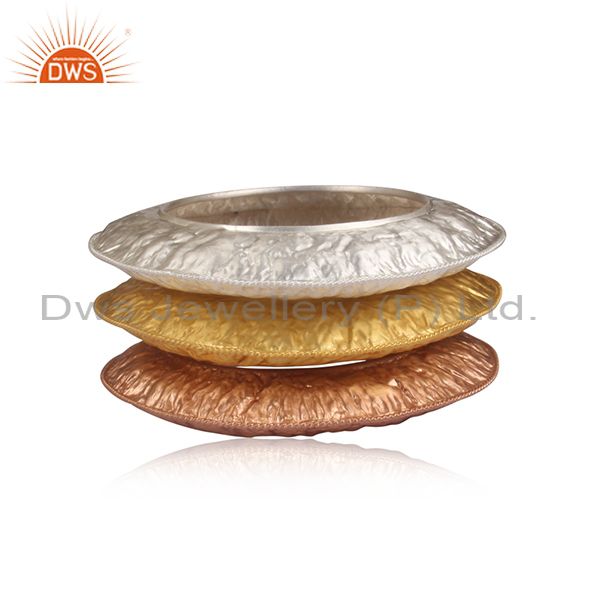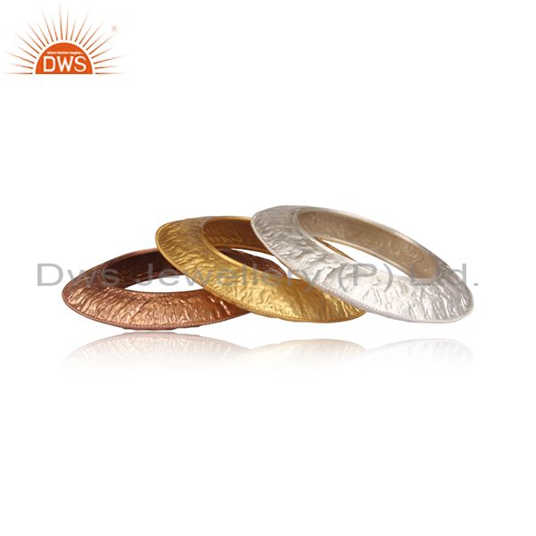 18K Gold Plated Sterling Silver Matte Finished Bangle Bracelet Set Of 3 Pieces