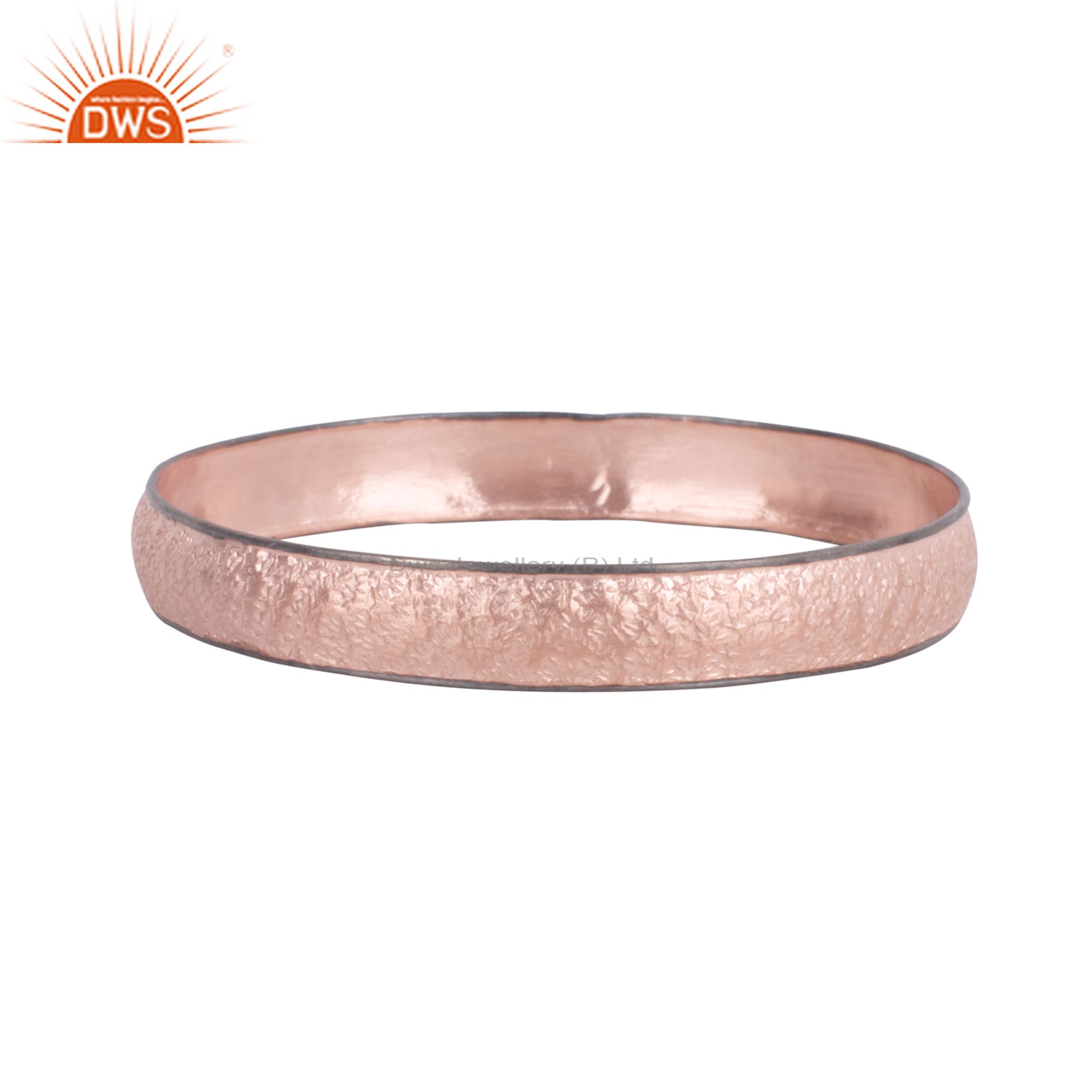 18K Rose Gold Plated Sterling Silver Hammered Bangle Bracelet Jewelry