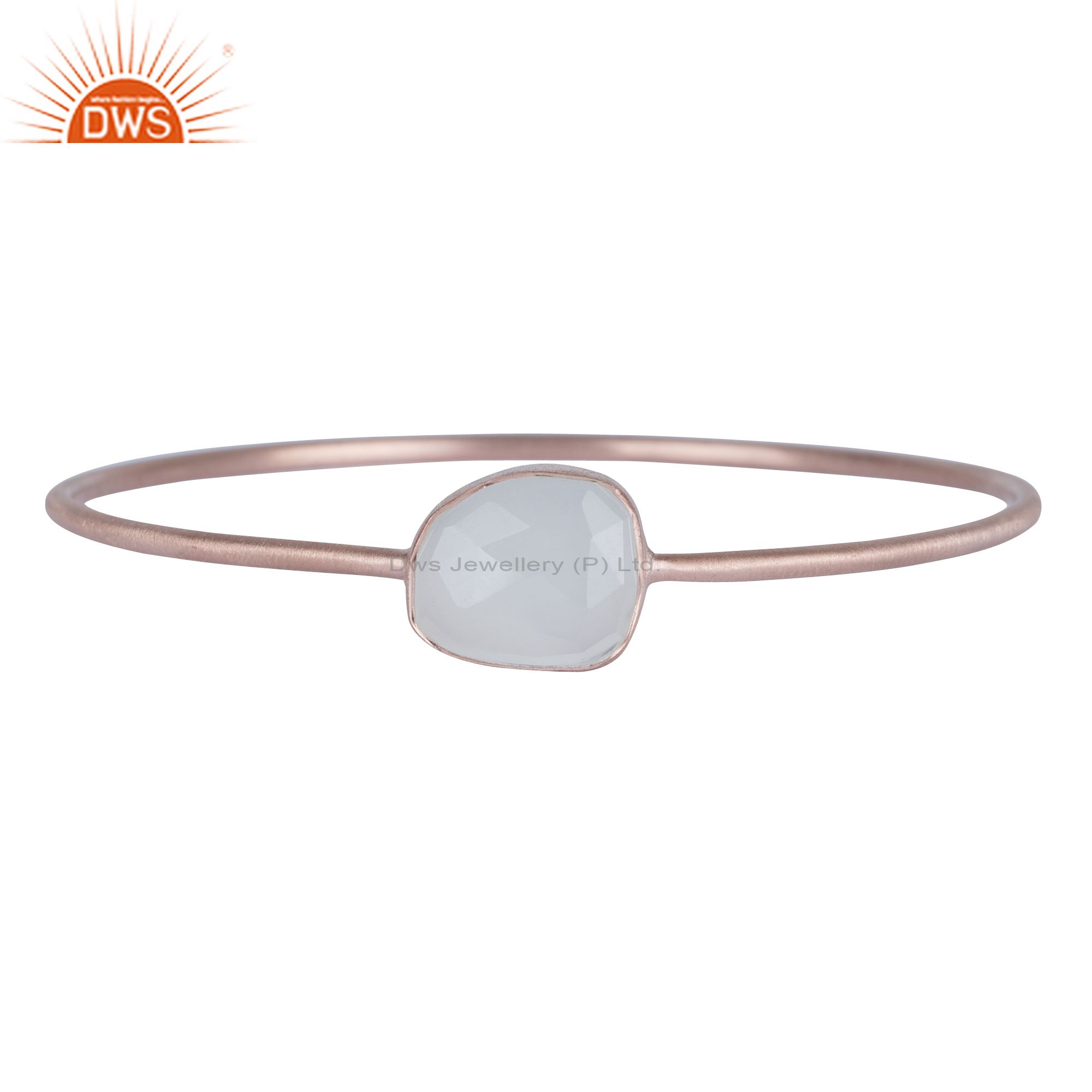 18K Rose Gold Plated Sterling Silver White Chalcedony Stackable Bangle