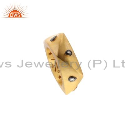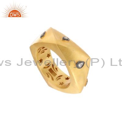 18K Yellow Gold And Sterling Silver Rose Cut Diamond Bangle Bracelet