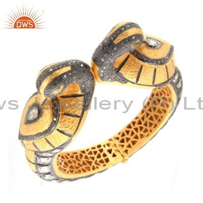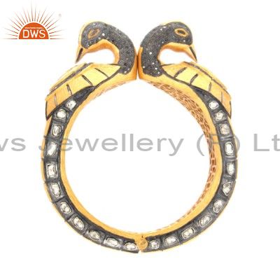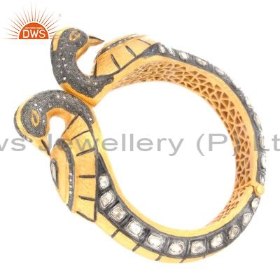 18K Yellow Gold And Sterling Silver Rose Cut Diamond Peacock Bangle Bracelet