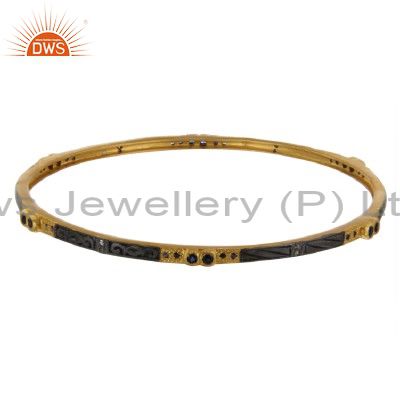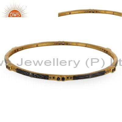 18K Yellow Gold Over Sterling Silver Pave Diamond Blue Sapphire Bangle Bracelet