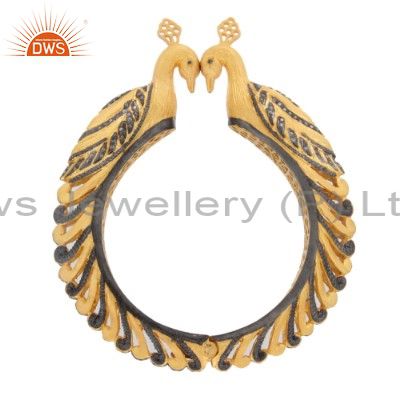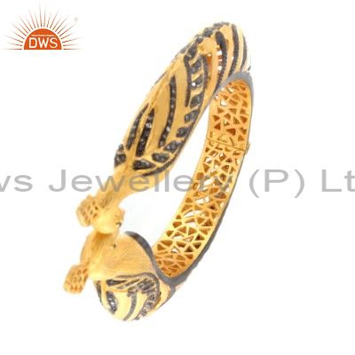18K Yellow Gold Over Sterling Silver Pave Set Diamond Peacock Cuff Bracelet
