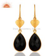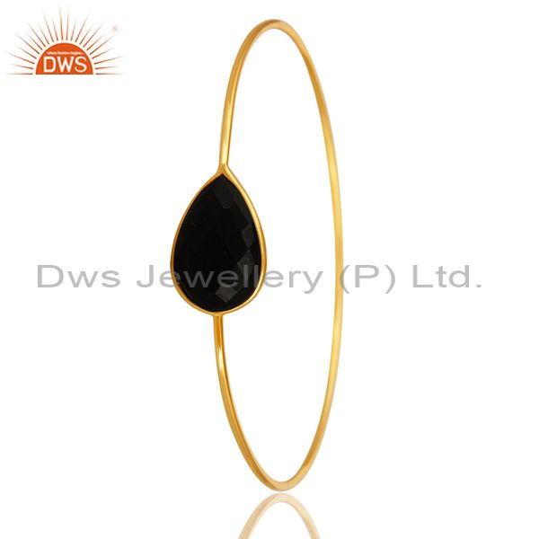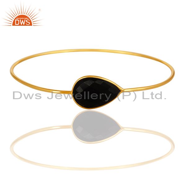 18K Yellow Gold Plated Sterling Silver Black Onyx Sleek Bangle Bracelet