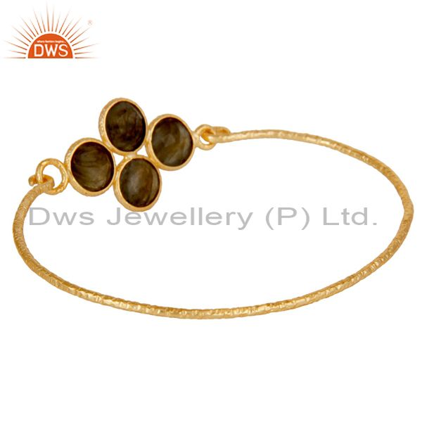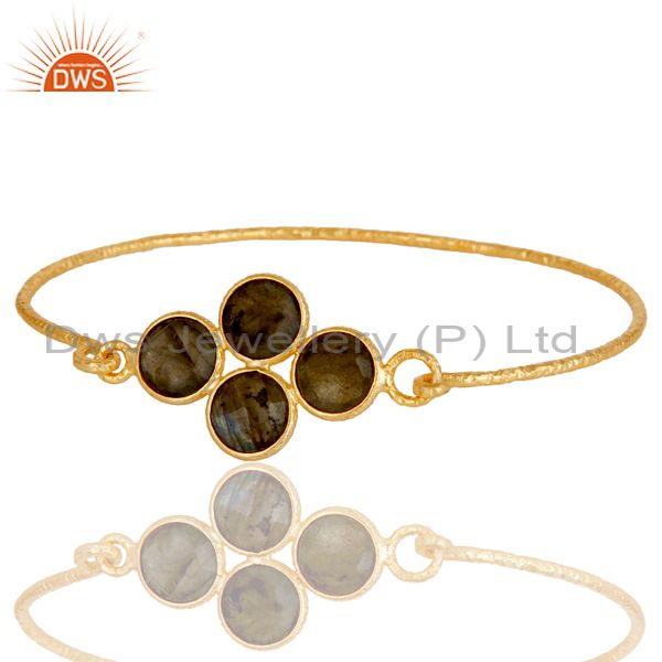 18K Yellow Gold Plated Sterling Silver Charm Fashion Labradorite Bangle