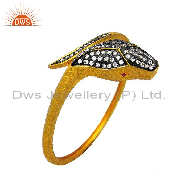 18K Yellow Gold Plated Sterling Silver Cubic Zirconia Snake Bangle Jewelry