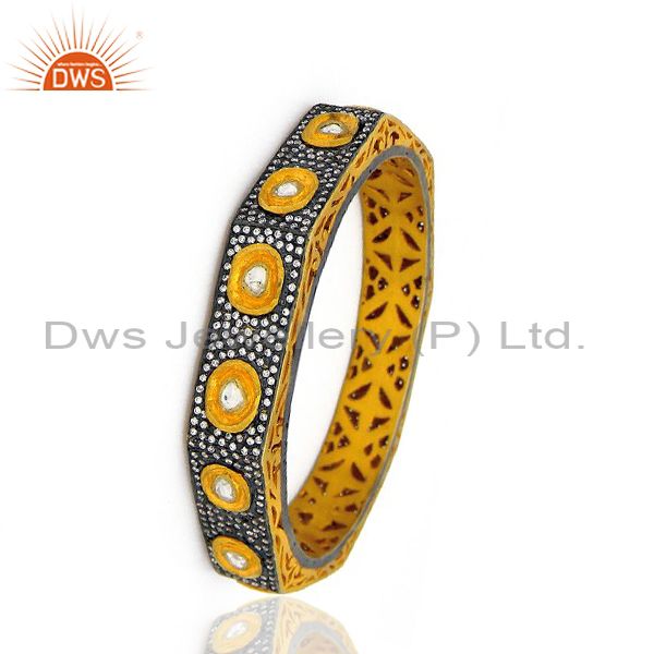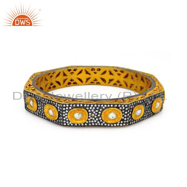 18K Yellow Gold Plated Sterling Silver Cz Crystal Polki Victorian Style Bangle