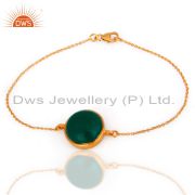 18K Yellow Gold Plated Sterling Silver Green Onyx Gemstone Open Bangle