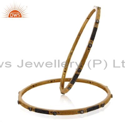 18K Yellow Gold Plated Sterling Silver Pave Diamond And Blue Sapphire Bangle