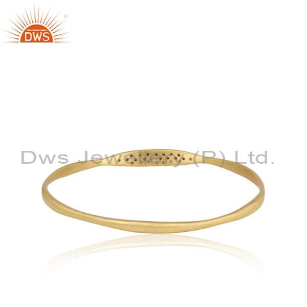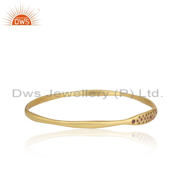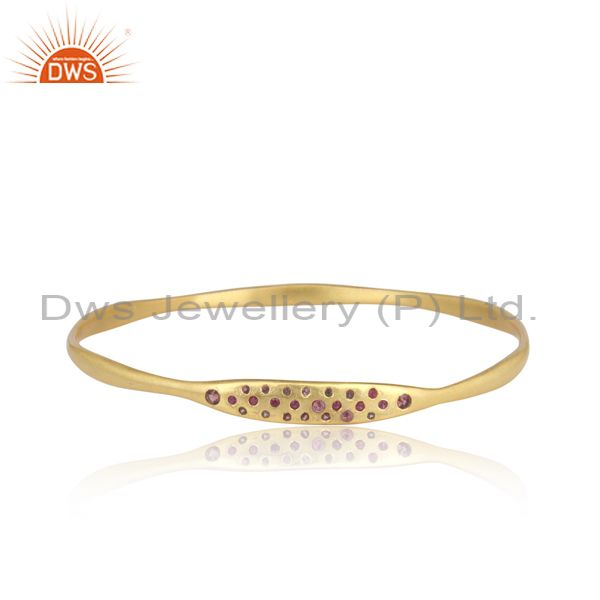 18K Yellow Gold Plated Sterling Silver Pink Tourmaline Gemstone Stackable Bangle