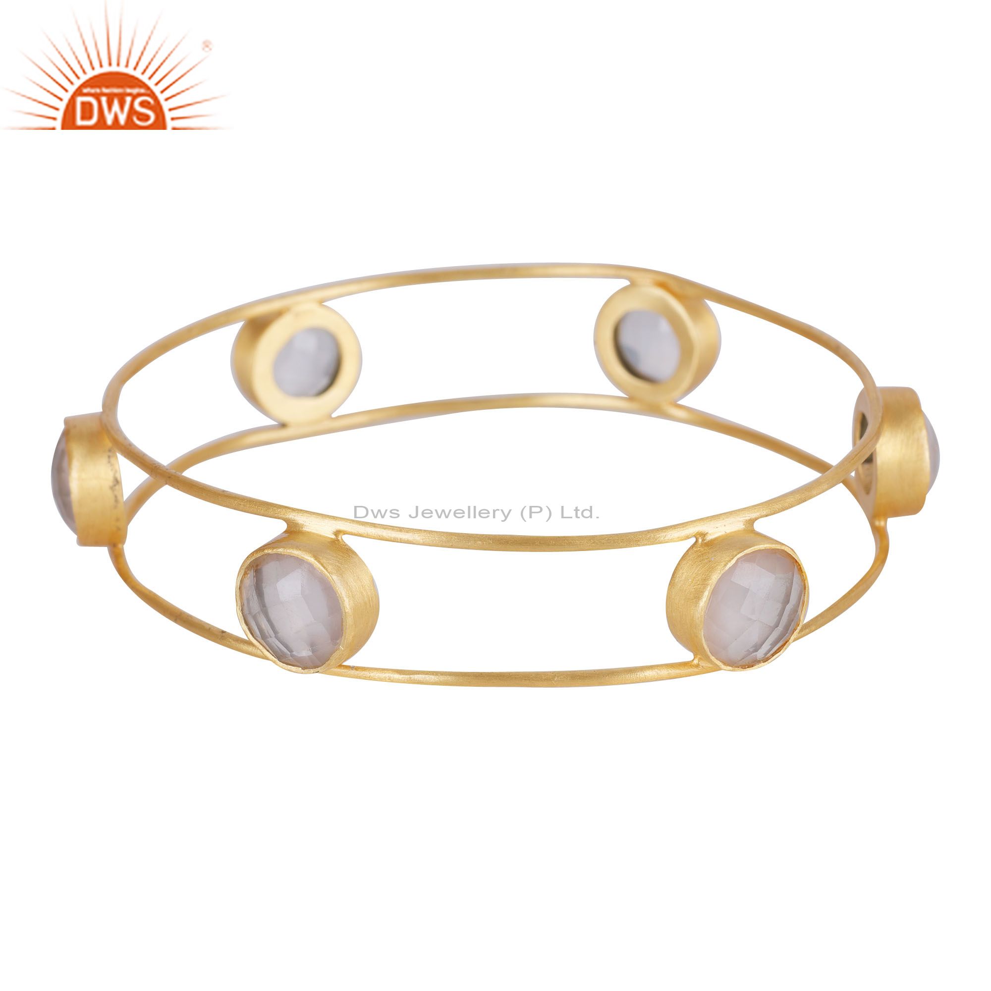 18K Yellow Gold Plated Sterling Silver Rose Quartz Gemstone Bangle Bracelet