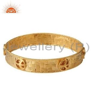 18K Yellow Gold Plated Sterling Silver Woven Pattern Designer Bangle Bracelet