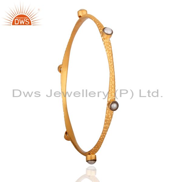 18Kt Gold Plated Sterling Silver Natural Pearl Hammered Textured Sleek Bangle