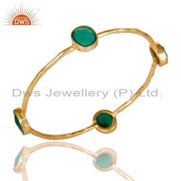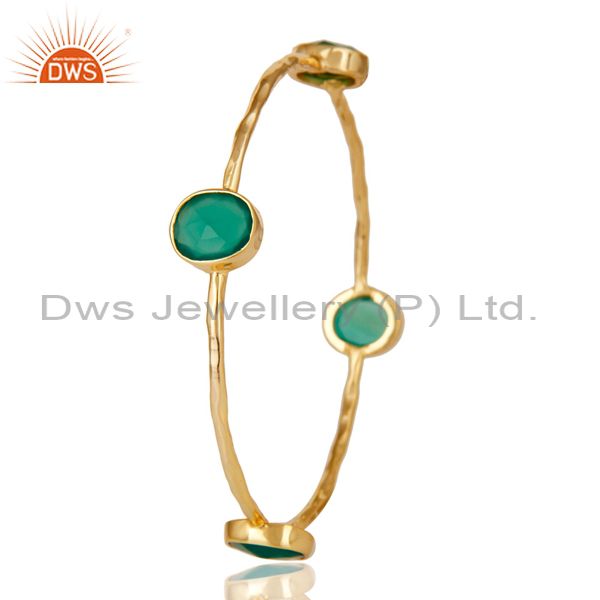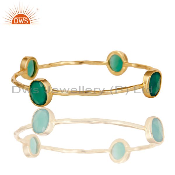 22K Gold Plated Green Onyx Gemstone 925 Sterling Silver Sleek Bangle