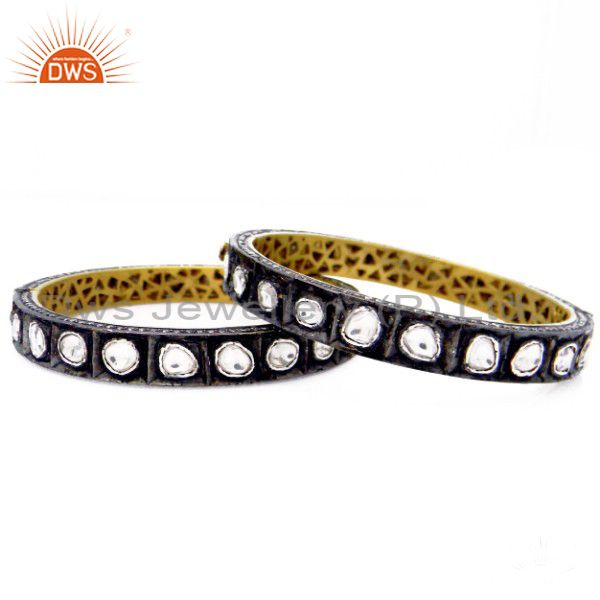 22K Yellow Gold Over Sterling Silver Crystal Cz Polki Victorian Style Bangle