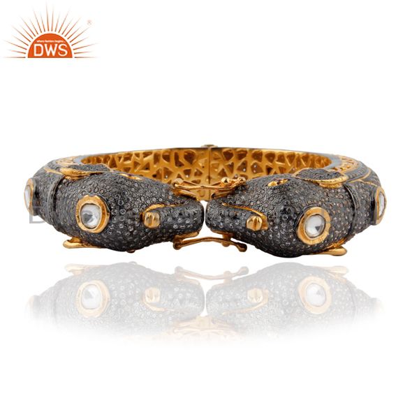 22K Yellow Gold Over Sterling Silver Cz Crystal Polki Elephant Bangle Bracelet