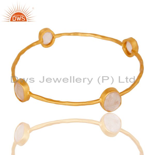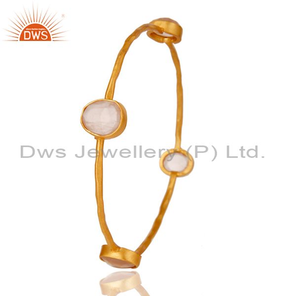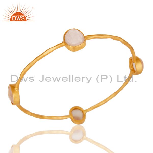 22K Yellow Gold Plated Brass Natural Rose Quartz Gemstone Stackable Bangle