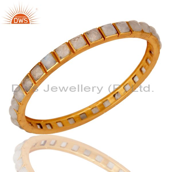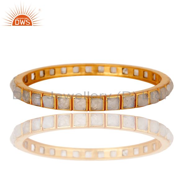 22K Yellow Gold Plated Rainbow Moonstone Brass Bangle Bracelet