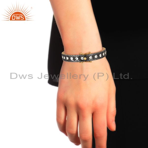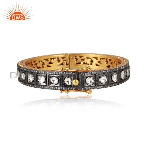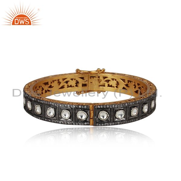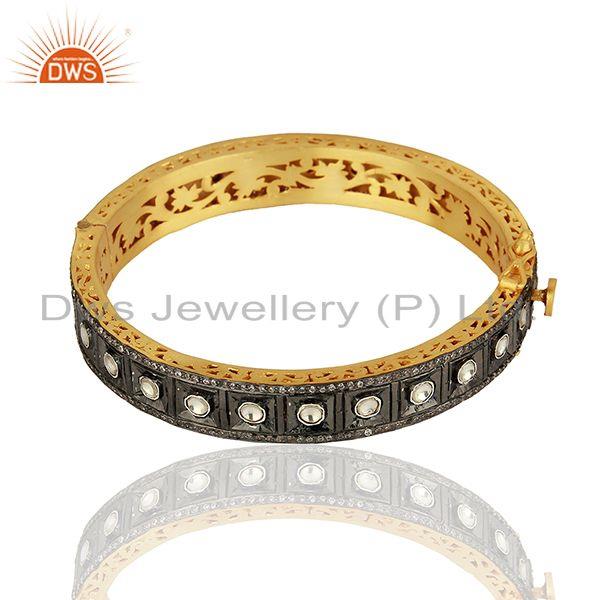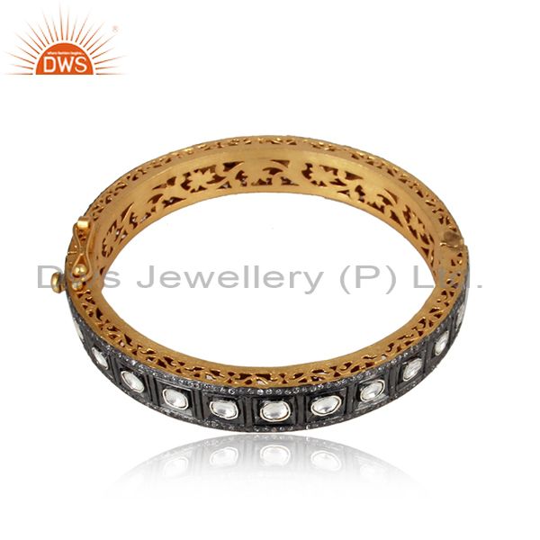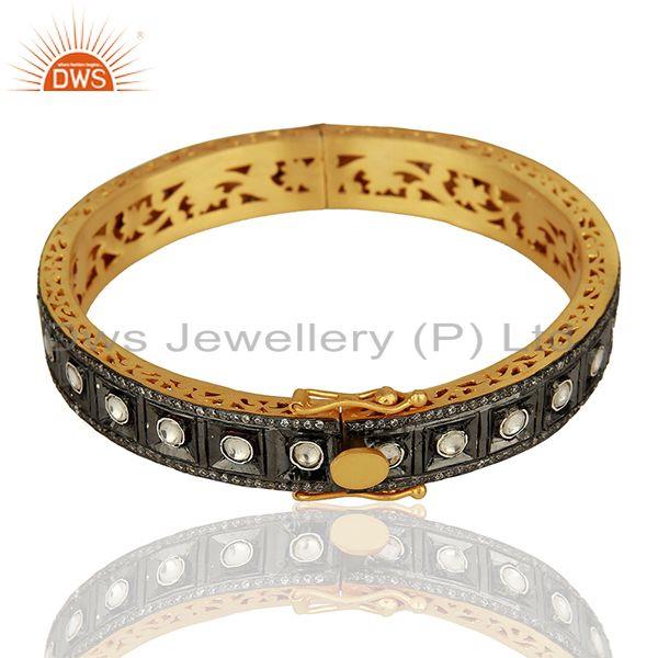 22K Yellow Gold Plated Sterling Silver Cz Crystal Polki Victorian Style Bangle