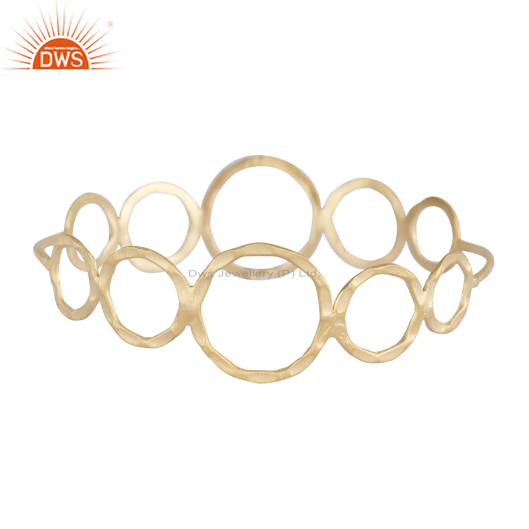 22K Yellow Gold Plated Sterling Silver Hammered Open Circle Bangle Bracelet