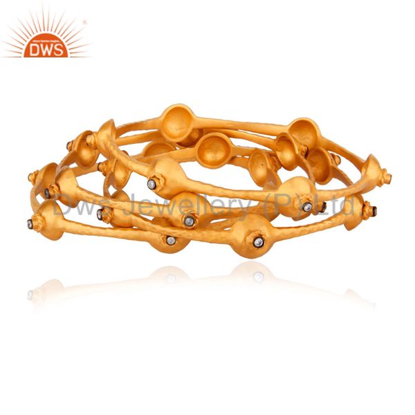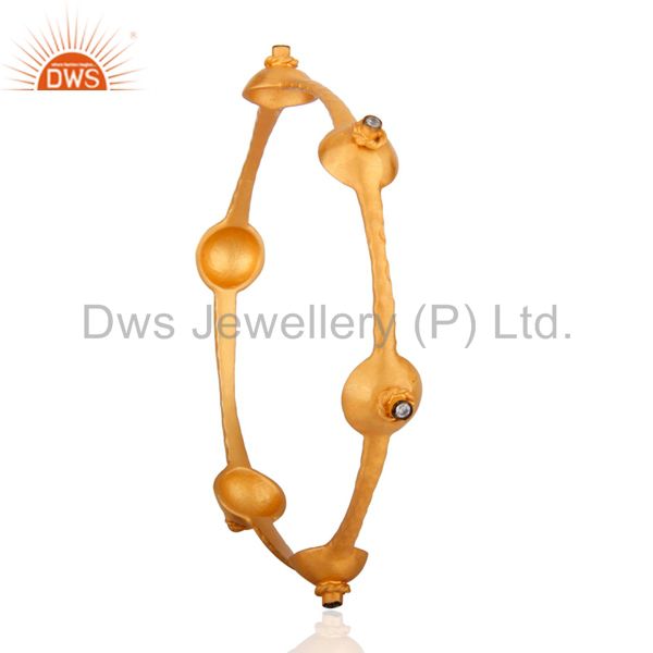 22K Yellow Gold Plated White Cubic Zirconia Hand Hammered Bangle Jewelry