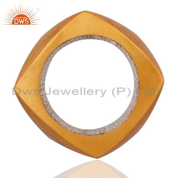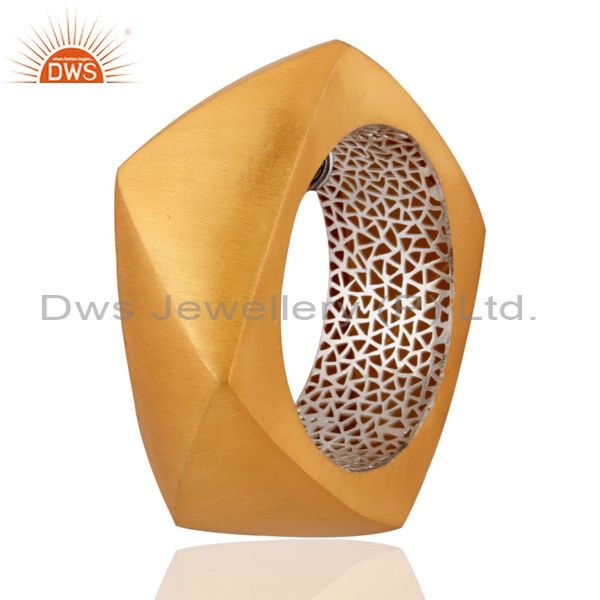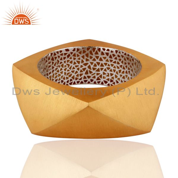 24K Yellow Gold Plated Solid Sterling Silver Brushed Wide Cuff Bangle Bracelet