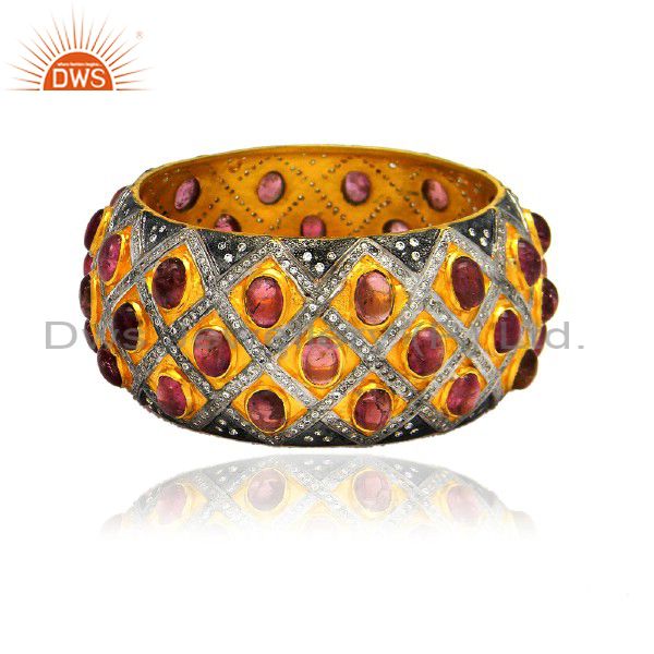 24K Yellow Gold Plated Sterling Silver Tourmaline And Cz Designer Bangle