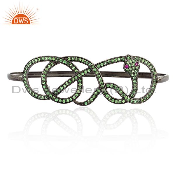 3.05ct Tsavorite Sterling Silver Wrap Snake Palm Bracelet Fashion Jewelry