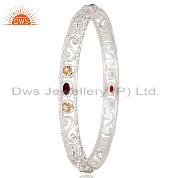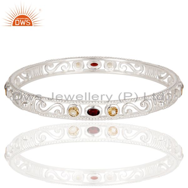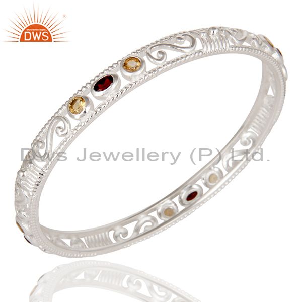925 Sterling Silver Citrine And Garnet Gemstone Designer Bangle Bracelet
