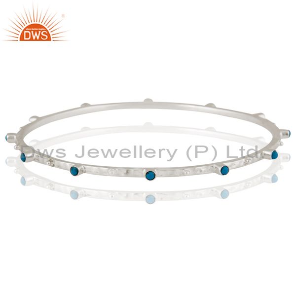 925 Sterling Silver Turquoise Gemstone Stackable Bangle Bracelet Jewelry
