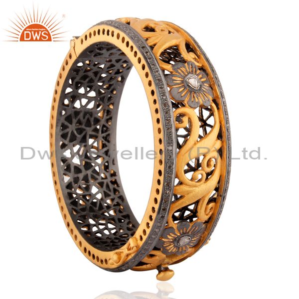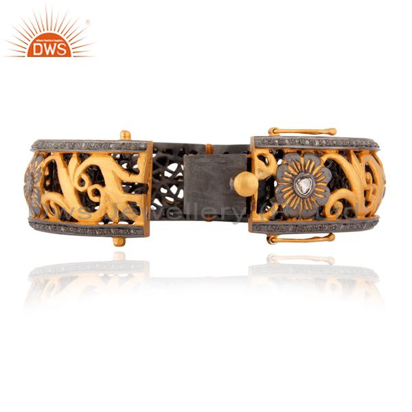 Antique Victorian 925 Sterling Silver 18K Gold Plated Rose Cut Diamond Bracelet
