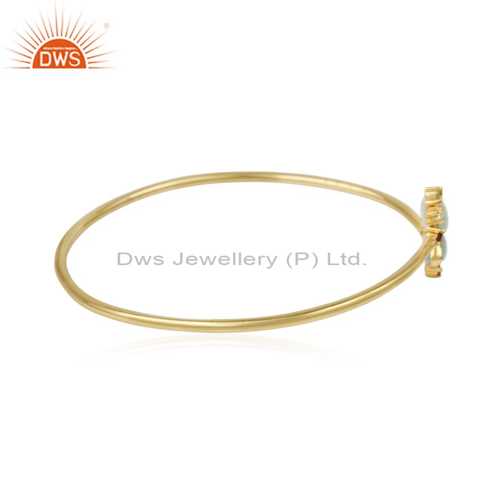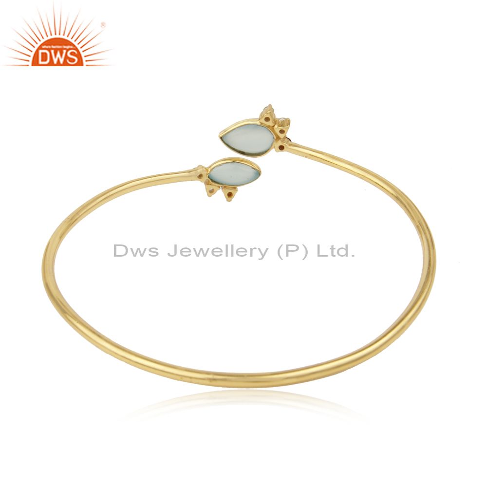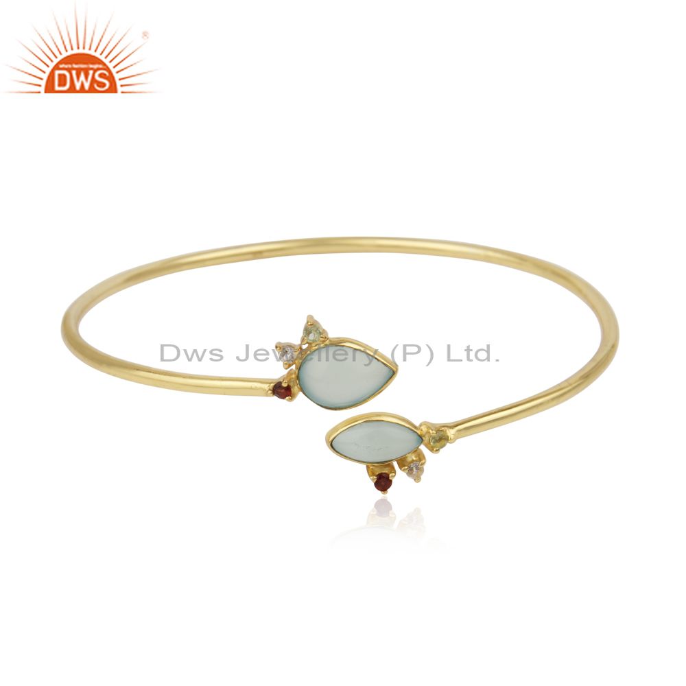 Aqua Chalcedony Gemstone Gold Plated Sterling Silver Cuff Bracelet