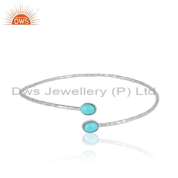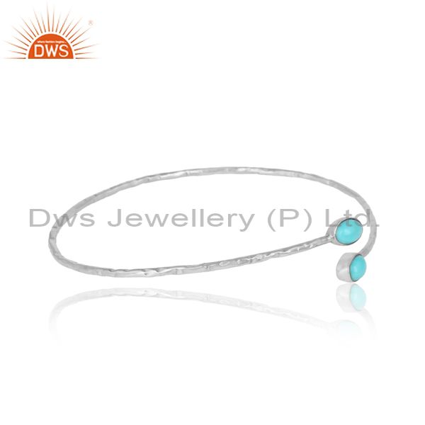 Arizona Turquoise Gemstone White Rhodium on 925 Silver Bangles