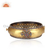 Artisan Openable Gold on Silver 925 Crystal, Cz and Ruby Bangle