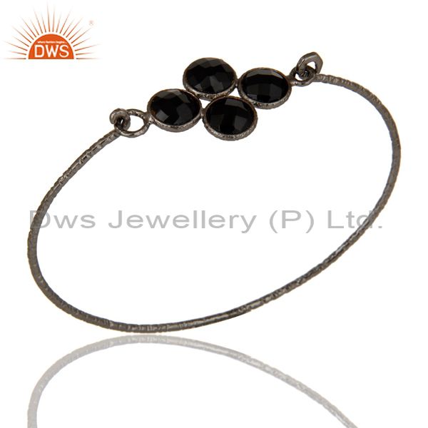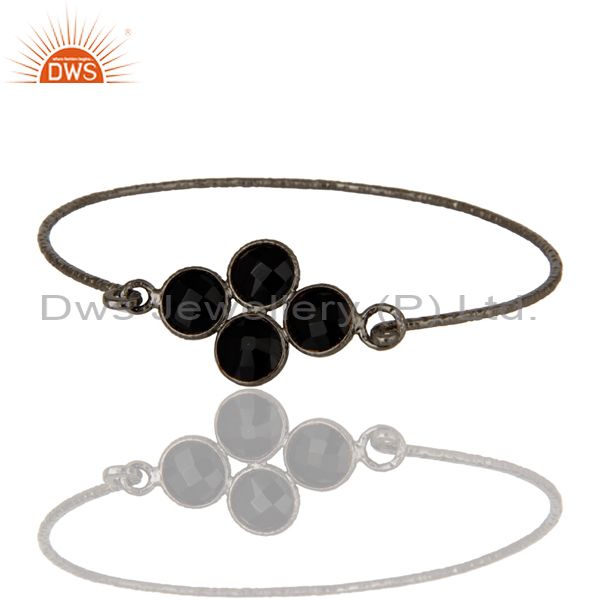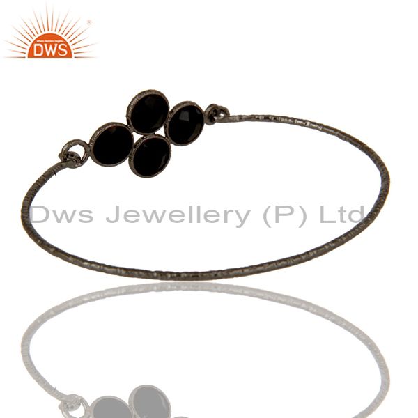 Black Oxidized 925 Sterling Silver Charm Fashion Design Black Onyx Bangle