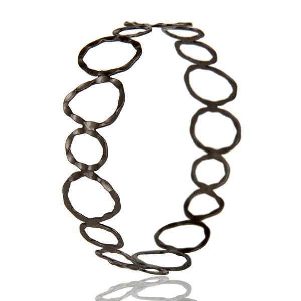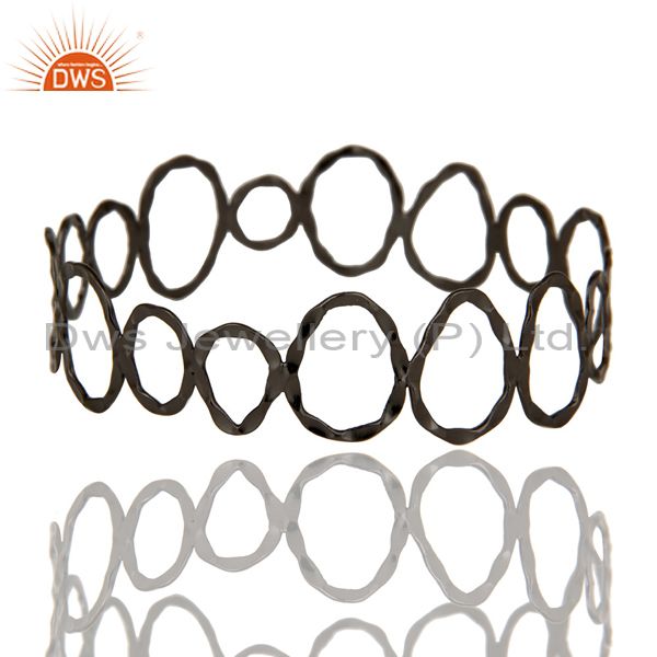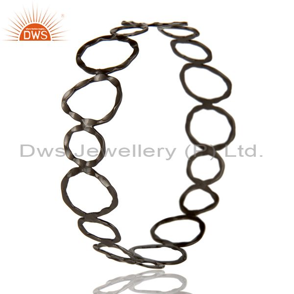 Black Oxidized 925 Sterling Silver Hammered Open Circle Wide Bangle Bracelet