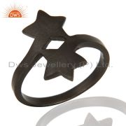 Black Rhodium Plated Sterling Silver Star Sign Simple Stacking Bangle Bracelet