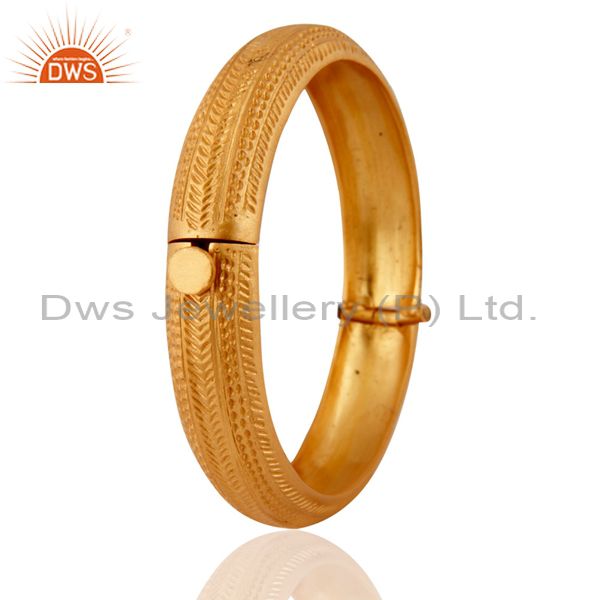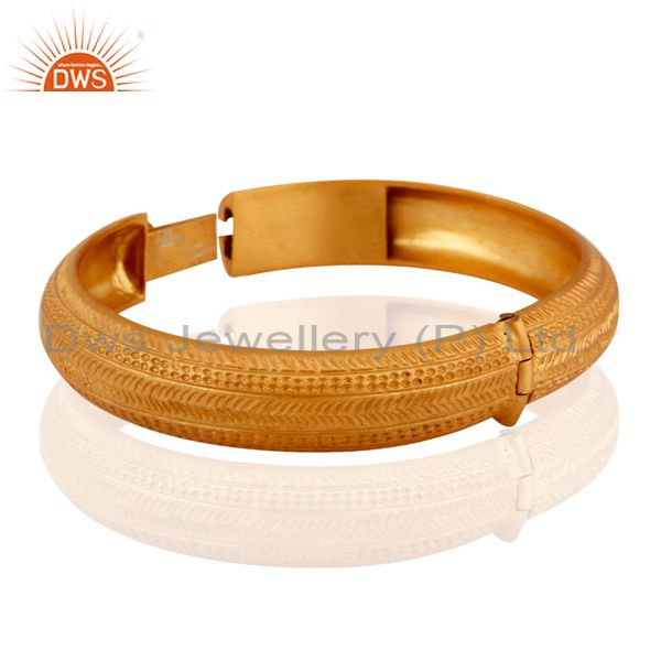 Brush Finished Sterling Silver 18K Yellow Gold Plated Bangle Bracelets