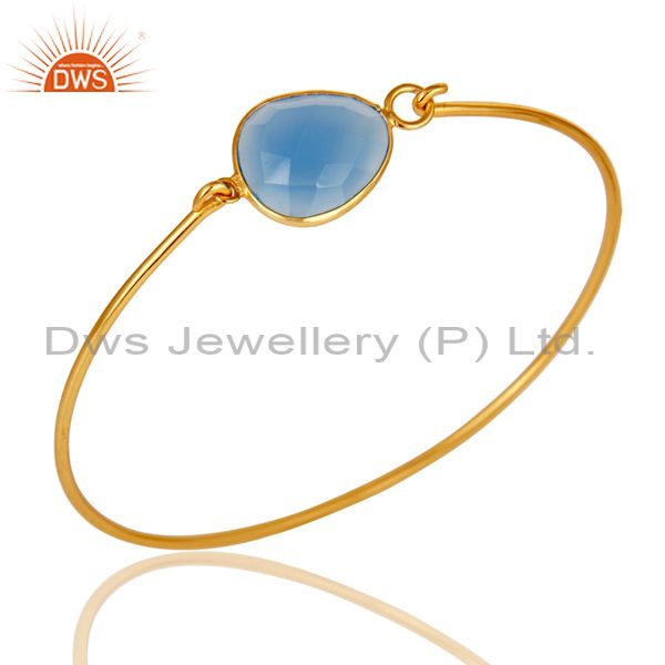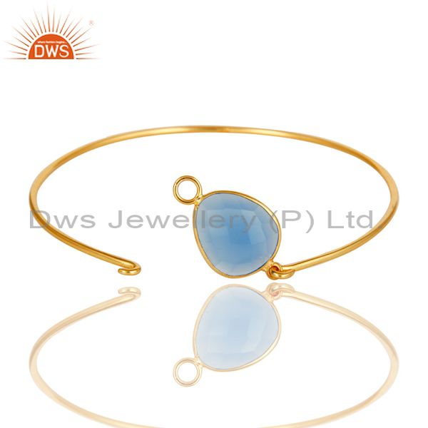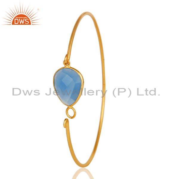 Chalcedony Gemstone With 18K Gold Plated Sterling Silver Openable Bangle