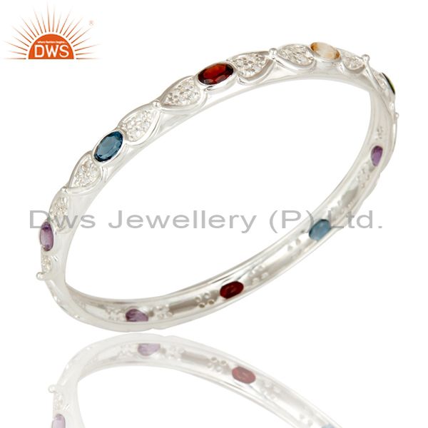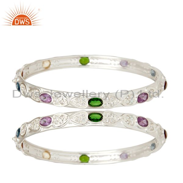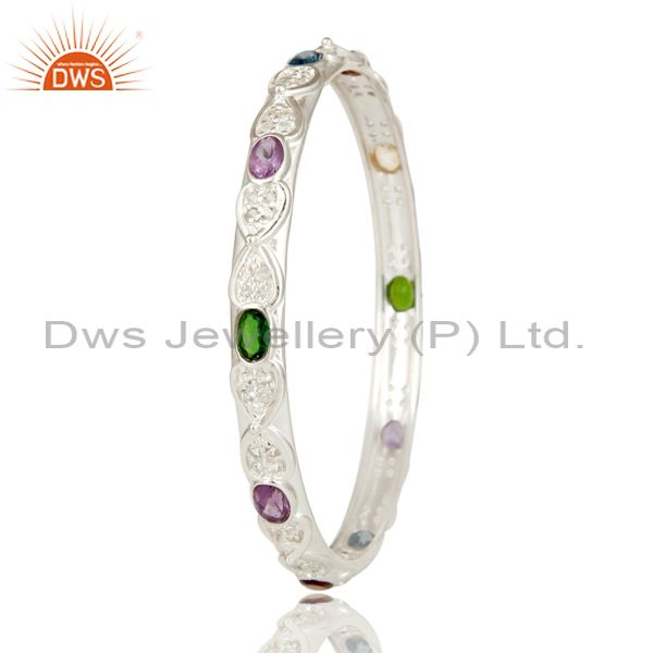 Chrome Diopsite, Amethyst And Multi Stone Colorful 925 Sterling Silver Bangle